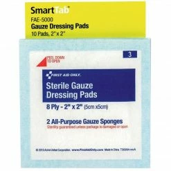 First Aid Only Gauze, Smart Compliance, 2″ Gauze Pads, 2 Pads/Pack, 5 Packs/Box (FAO5000)