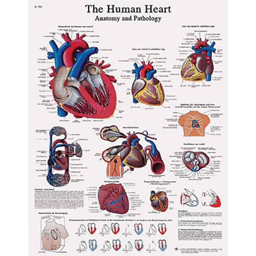 The anatomy and physiology of the human heart is colorfully and accurately depicted in this anatomical chart