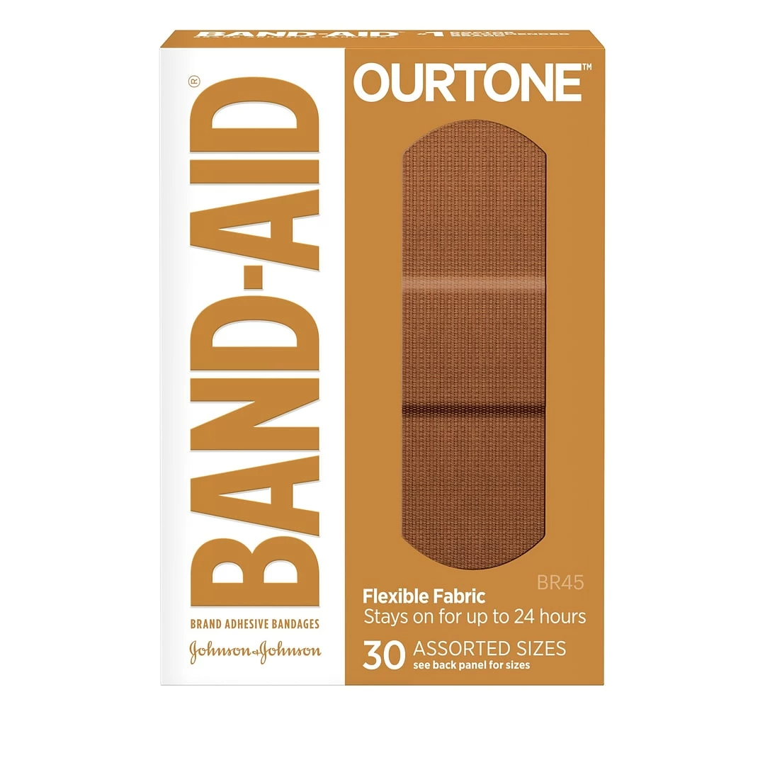 Band-Aid Brand Ourtone Flexible Fabric Adhesive Bandages in assorted sizes provide a wound care option in shades for Brown skin tones. Designed to blend in with your skin tone, these fabric bandages in shade BR45 are made with Memory Weave fabric to cover and protect minor wounds, cuts and scrapes by stretching, bending, and flexing with your skin as you move. From the #1 doctor recommended bandage brand, the flexible bandages protect against dirt and germs for up to 24 hours to help with your healing wounds. Each bandage features a Quilt-Aid pad for complete coverage that won’t stick to the wound as it wicks away blood and fluids, allowing for gentle removal. Apply the sterile adhesive bandage to clean, dry skin for minor wound care and change daily, when wet, or as needed. Launching a range of bandages in light (BR45), medium (BR55) and deep (BR65) shades for Brown skin tones, Band-Aid Brand Ourtone Adhesive Bandages embrace the beauty of diverse skin.