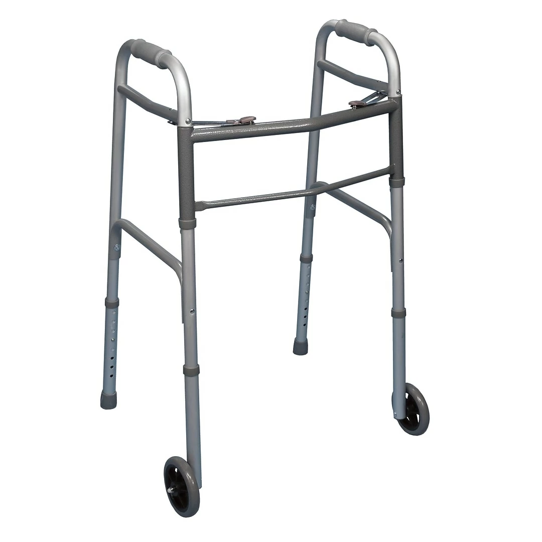 Bilt-Rite Mutual Double Button Walker is made of lightweight and durable aluminum that provides stability. It has 5″ wheels that gives smooth mobility for older generation.