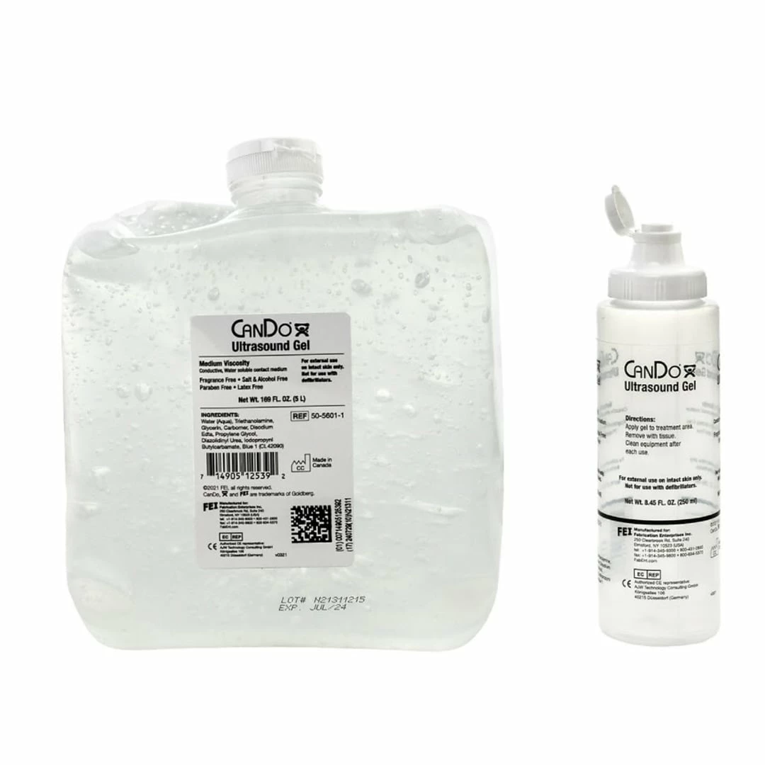 Widely used for both diagnostic and therapeutic ultrasound, The CanDo Ultrasound Gel is designed to acoustically correct for a broad range of frequencies. This non-greasy, non-staining gel is both efficient and effective in enhancing conductivity and reducing overall static. It features a medium viscosity that helps prevent running for easy application. Simply apply the gel to treatment area, remove tissue, and clean the equipment after each use. The water-soluble formula offers easy cleanup and is safe with most equipment and instruments. Please note, this is for external use on intact skin only and not to be used with defibrillators. Available in an 8.5 oz or 5 liter container. Case of 12.