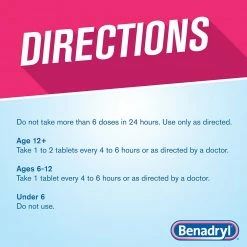 | Brand : BENADRYL | Cold, Flu & Allergy Symptom : Allergy Relief | Cough, Cold & Allergy Pack Size : 101-500 | Cough, Cold, Flu & Allergy Type : Tablet |