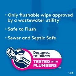 Cottonelle Flushable Wet Wipes are 100% flushable and are the only flushable wipes endorsed by a WasteWater Utility (JEA). This contains 2 flip-top packs of Cottonelle flushable wipes with 84 total wipes. Designed for toilets and tested with plumbers, Cottonelle flushable wipes begin breaking down immediately after flushing and are stored in resealable packs to preserve freshness and moisture. Ideal for everyday hygiene or potty training toddlers, Cottonelle Flushable Wet Wipes provide freshness you can feel with Cleaning Ripples and Cleansing Water for a Complete Clean. Fibers are 100% biodegradable, free of plastic, sewer-safe and septic-safe. Alcohol-free, paraben-free, dye-free with no harsh ingredients provide a refreshingly clean experience when paired with Cottonelle CleanCare, ComfortCare, or GentleCare toilet paper.