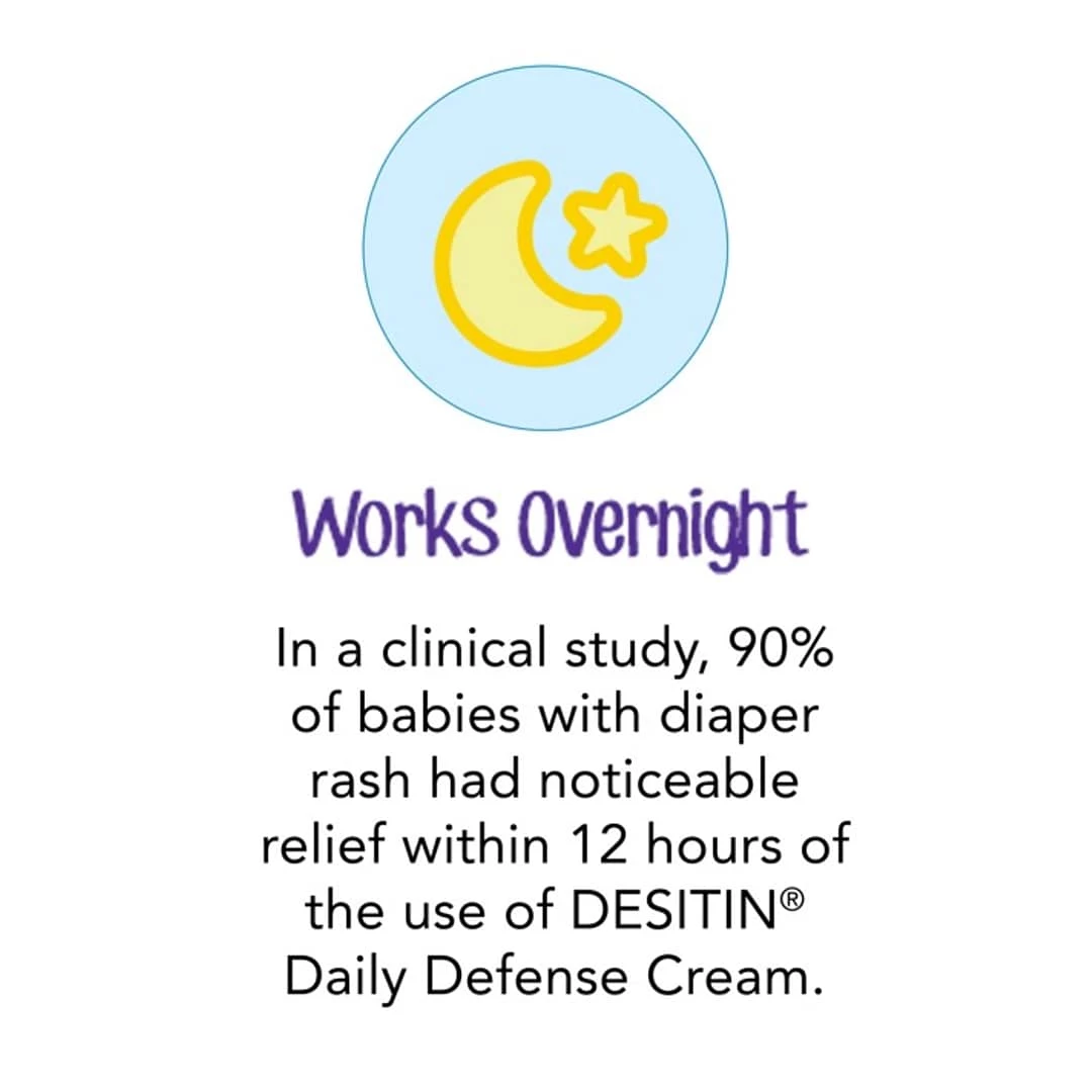 4-ounces of Desitin Daily Defense Baby Diaper Rash Cream that works from the first use to help soothe, treat and prevent diaper rash