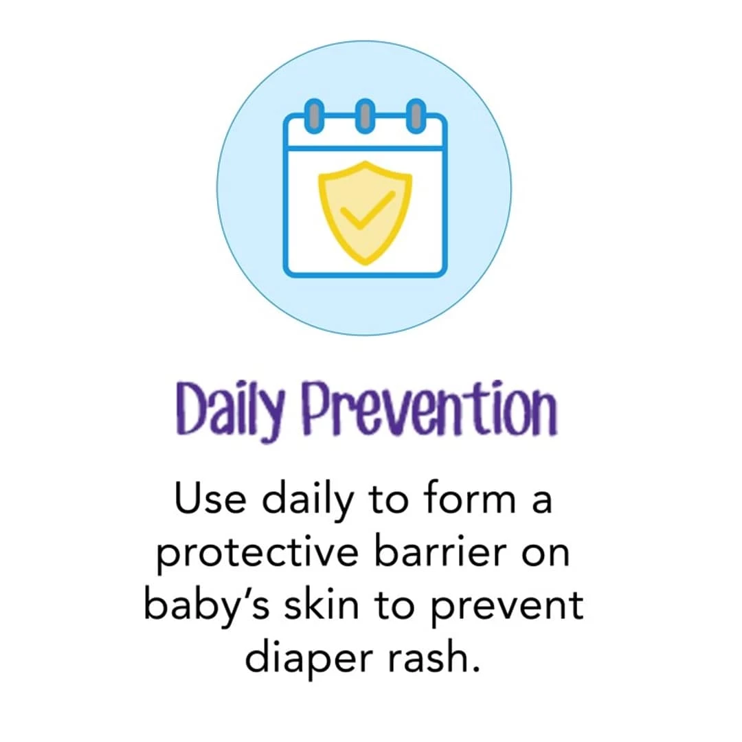 Soothe, treat & prevent diaper rash with this daily diaper rash cream. Made with 13% zinc oxide, it provides a barrier to protect & soothe baby’s delicate skin & is both easy to apply & remove.