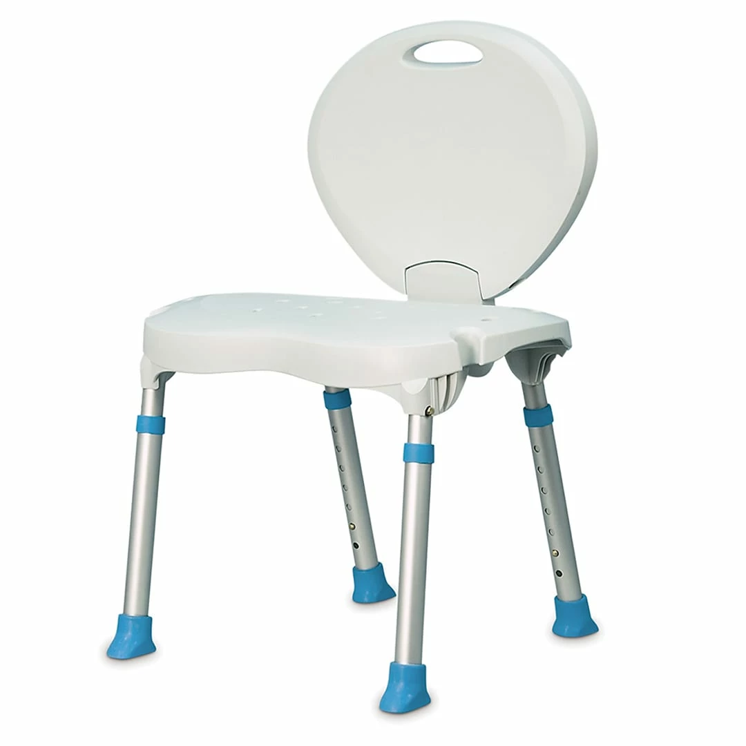 These white folding bath chairs have a slip resistant plastic seat with drainage holes and backrest for your safety and comfort. The adjustable legs raise or lower seat height while the non-slip rubber safety tips provide extra stability. All AquaSense Bath and Shower Chairs have a lightweight, corrosion resistant aluminum frame and 250 lb (113 kg) weight capacity. This folding bath seat fits effectively with almost any bath mat and has easy tool-free assembly.