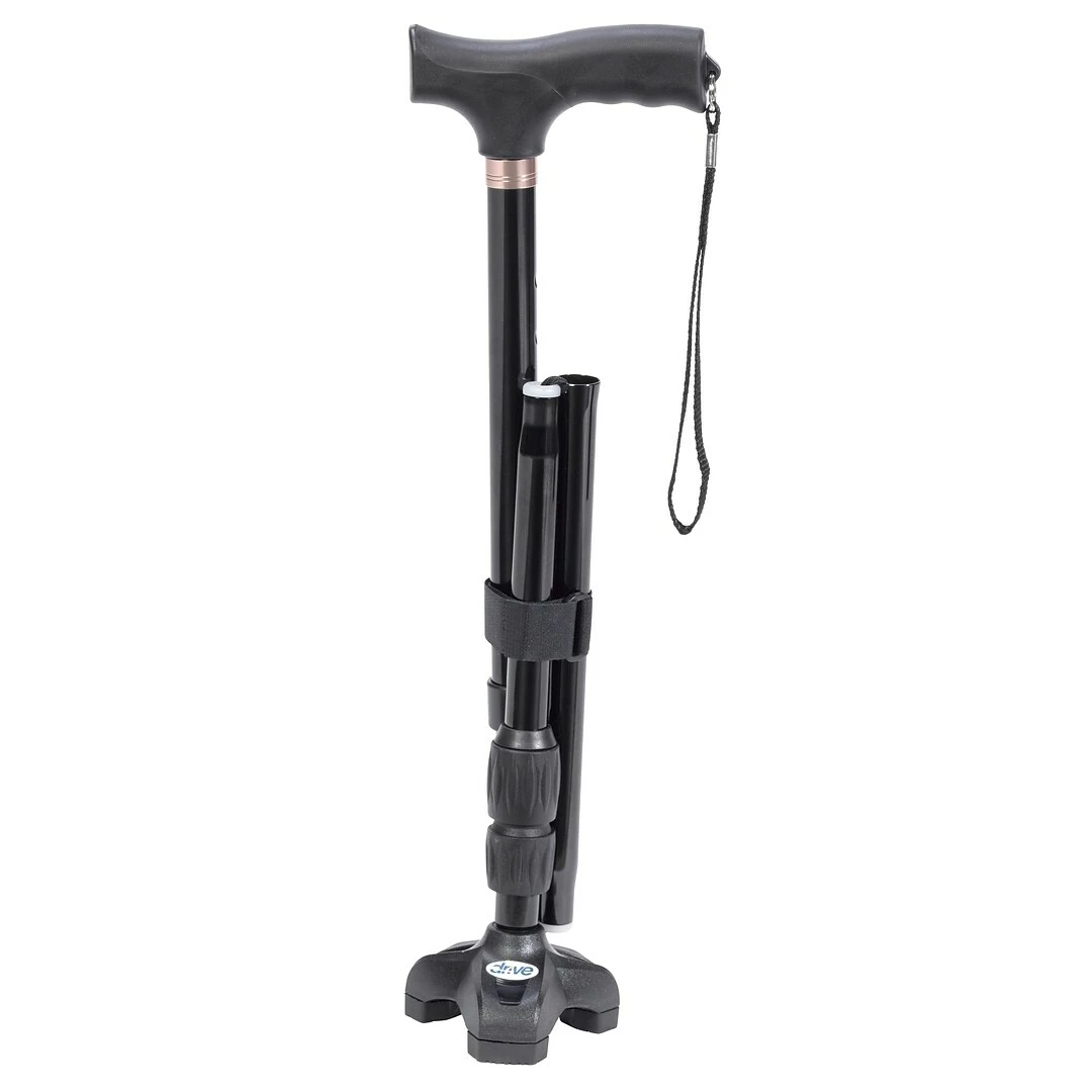 The Flex N Go Cane is a revolutionary cane that provides you with a smooth, safe and comfortable experience. With an ergonomically designed handle, the cane offers a tip with three points; it flexes and swivels on uneven ground for superior balance. The height of the cane is adjustable, folds for ease of travel and to store.