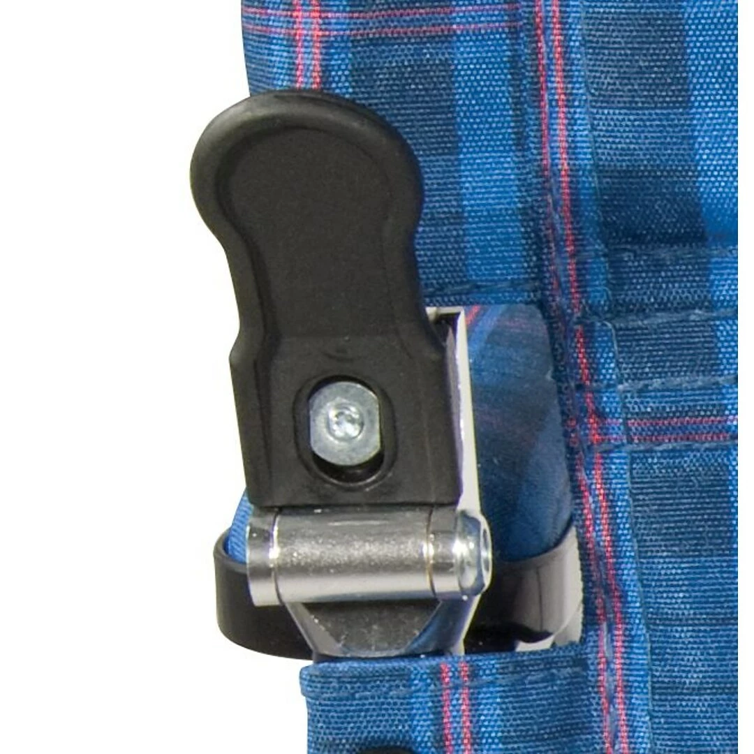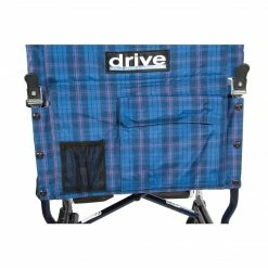 The 19″ Fly Lite Ultra Lightweight Aluminum Transport Chair by Drive Medical, available in a variety of attractive colors, is an ultra light transport chair, weighing under 17 lbs without riggings. This transport chair comes with a stylish blue aluminum frame and blue plaid nylon upholstery. It is also durable and easy to clean. Comes standard with a carry pocket on the back rest to easily and securely transport personal items, seatbelt for added safety, and tool free, height adjustable swing away footrests. The deluxe back release allows the back to be folded down easily, making the chair easy to store and transport.