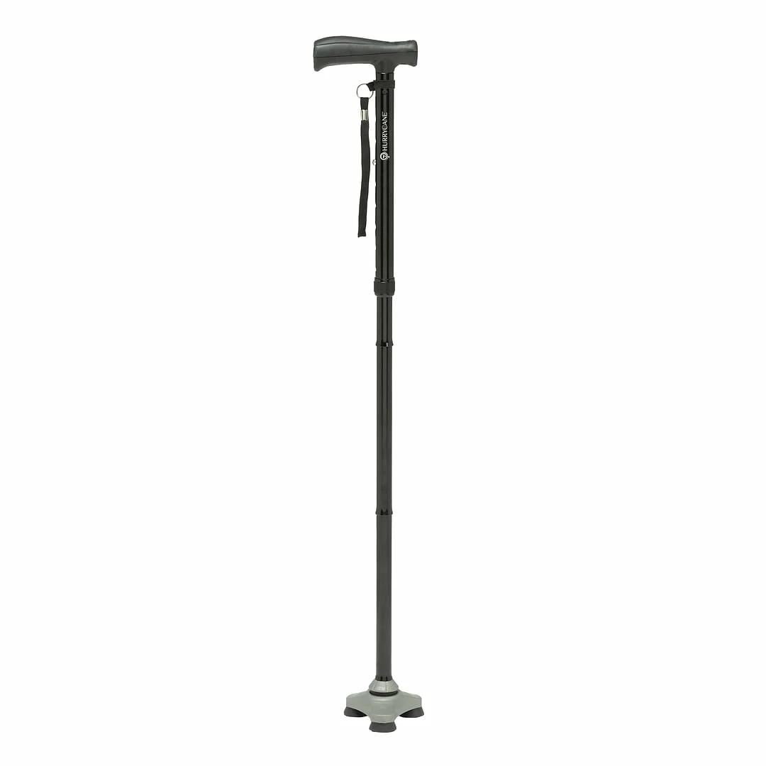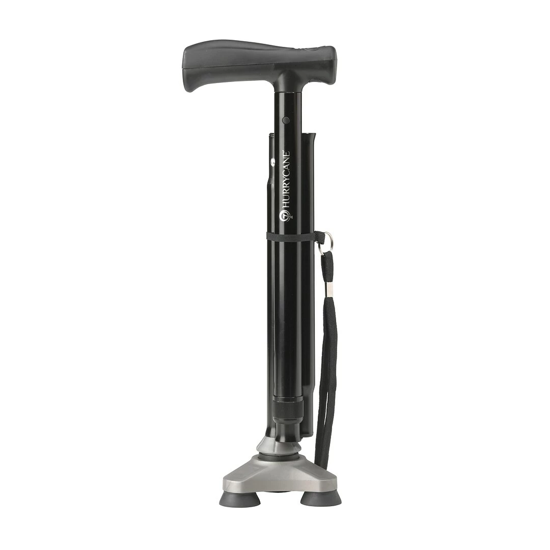 Cutting-edge, patented technology allows the HurryCane, the #1 selling cane in America, to feel like a seamless extension of the body.The HurryCane is unrivaled thanks to industry-leading innovations. A SteadiGrip base simulates your foot’s natural stabilizing points, increasing traction and improving balance. To further maximize stabilization, the HurryCane automatically flexes on inclines, uneven ground, and fluctuating terrain both inside and outdoors. Effortlessly fold the HurryCane to one-third its normal size for compact storing whenever needed, and easily flip back out for continued use. To find the perfect fit that will provide lasting comfort, adjust the cane height between 30.5″ to 37.5″ by simply pushing the button located on the handle. Feel confident using the durable HurryCane to ensure the next steps you take are safe. The HurryCane is tested to support up to 350 pounds.