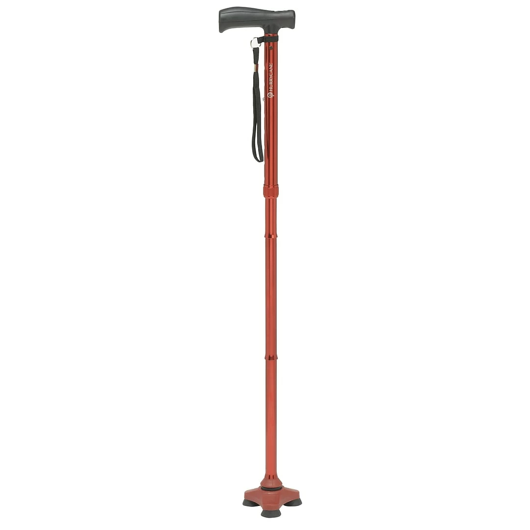 Cutting-edge, patented technology allows the HurryCane, the #1 selling cane in America, to feel like a seamless extension of the body.The HurryCane is unrivaled thanks to industry-leading innovations. A SteadiGrip base simulates your foot’s natural stabilizing points, increasing traction and improving balance. To further maximize stabilization, the HurryCane automatically flexes on inclines, uneven ground, and fluctuating terrain both inside and outdoors. Effortlessly fold the HurryCane to one-third its normal size for compact storing whenever needed, and easily flip back out for continued use. To find the perfect fit that will provide lasting comfort, adjust the cane height between 30.5″ to 37.5″ by simply pushing the button located on the handle. Feel confident using the durable HurryCane to ensure the next steps you take are safe. The HurryCane is tested to support up to 350 pounds.