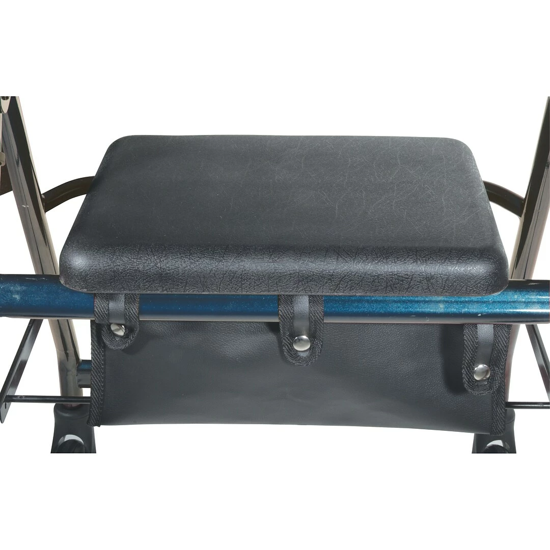 The Walker Rollator with 6″ Wheels, Fold Up Removable Back Support and Padded Seat in Blue by Drive Medical comes standard with 6″ caster wheels, loop locks and serrated brakes to ensure safety. The seamless padded seat opens to a roomy, convenient, zippered storage pouch to easily and securely transport personal items, and the ergonomic handles are easy to grip, relieve hand pressure, and are height adjustable to accommodate users height. This Rollator by Drive Medical is a great value that provides the freedom of mobility. With a convenient seat for resting and loop locks that keep the Rollator from moving, you can be assured that this mobility aid will provide a safe and secure way to regain your active lifestyle.