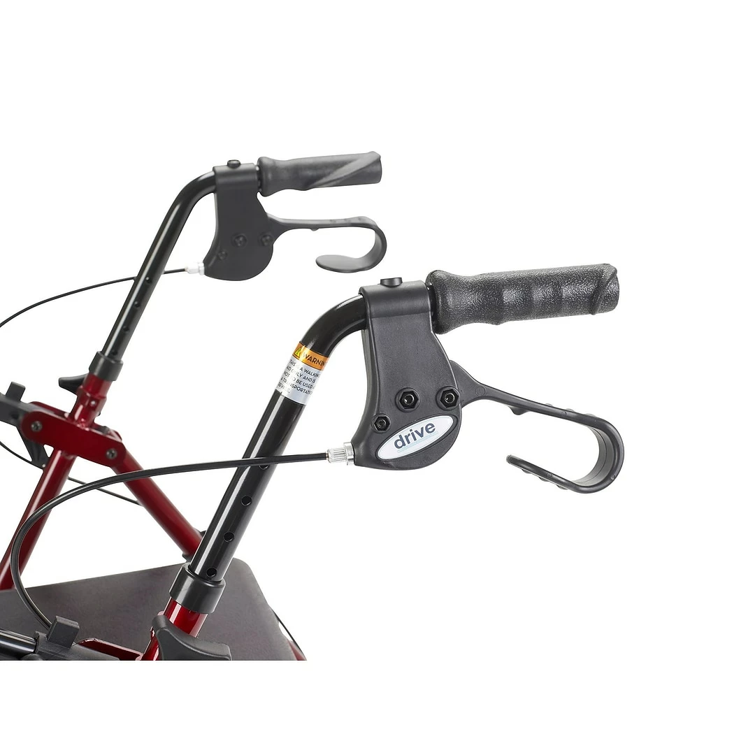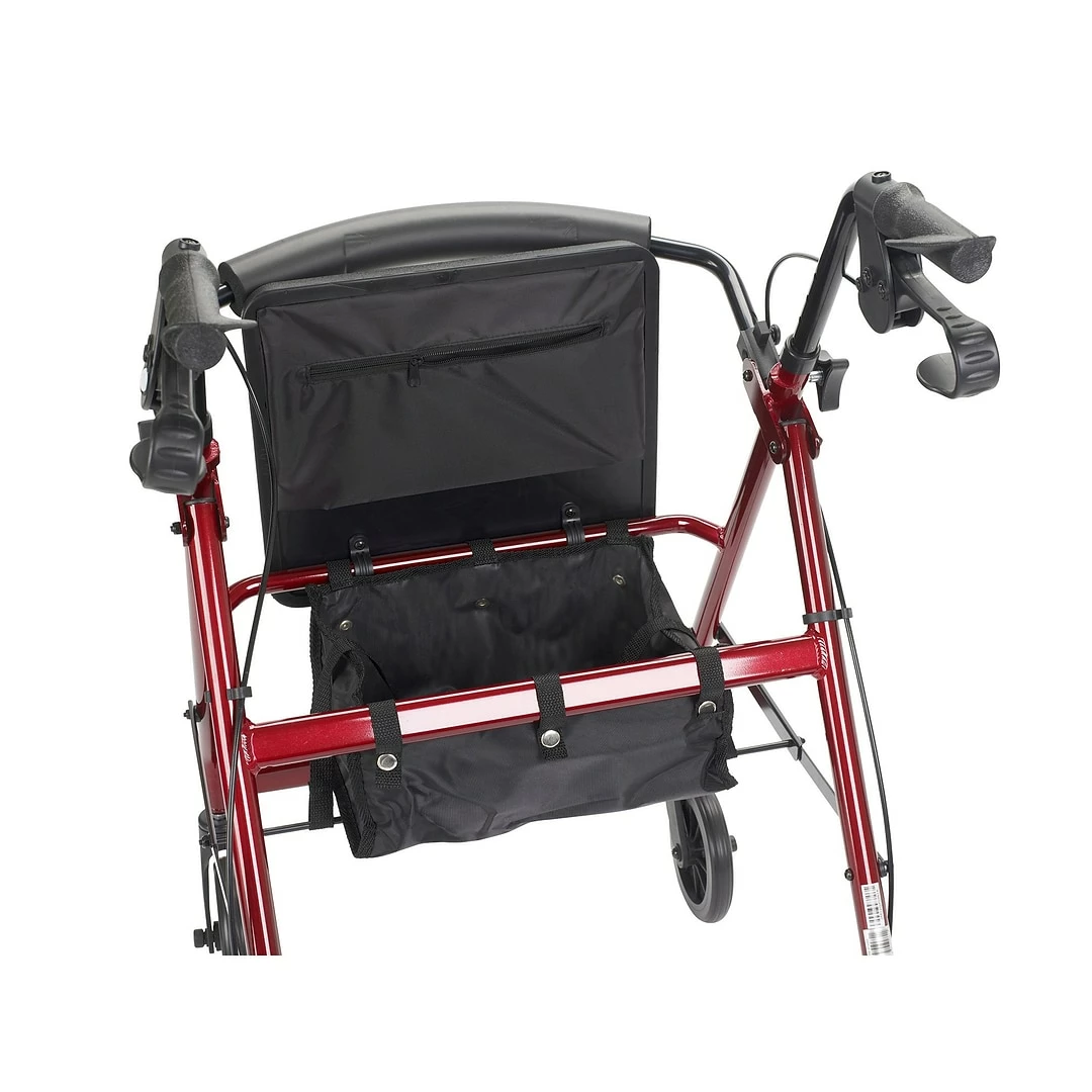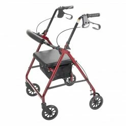 The Walker Rollator with 6″ Wheels, Fold Up Removable Back Support and Padded Seat in Red by Drive Medical comes standard with 6″ caster wheels, loop locks and serrated brakes to ensure safety. The seamless padded seat opens to a roomy, convenient, zippered storage pouch to easily and securely transport personal items, and the ergonomic handles are easy to grip, relieve hand pressure, and are height adjustable to accommodate users height. This Rollator by Drive Medical is a great value that provides the freedom of mobility. With a convenient seat for resting and loop locks that keep the Rollator from moving, you can be assured that this mobility aid will provide a safe and secure way to regain your active lifestyle.