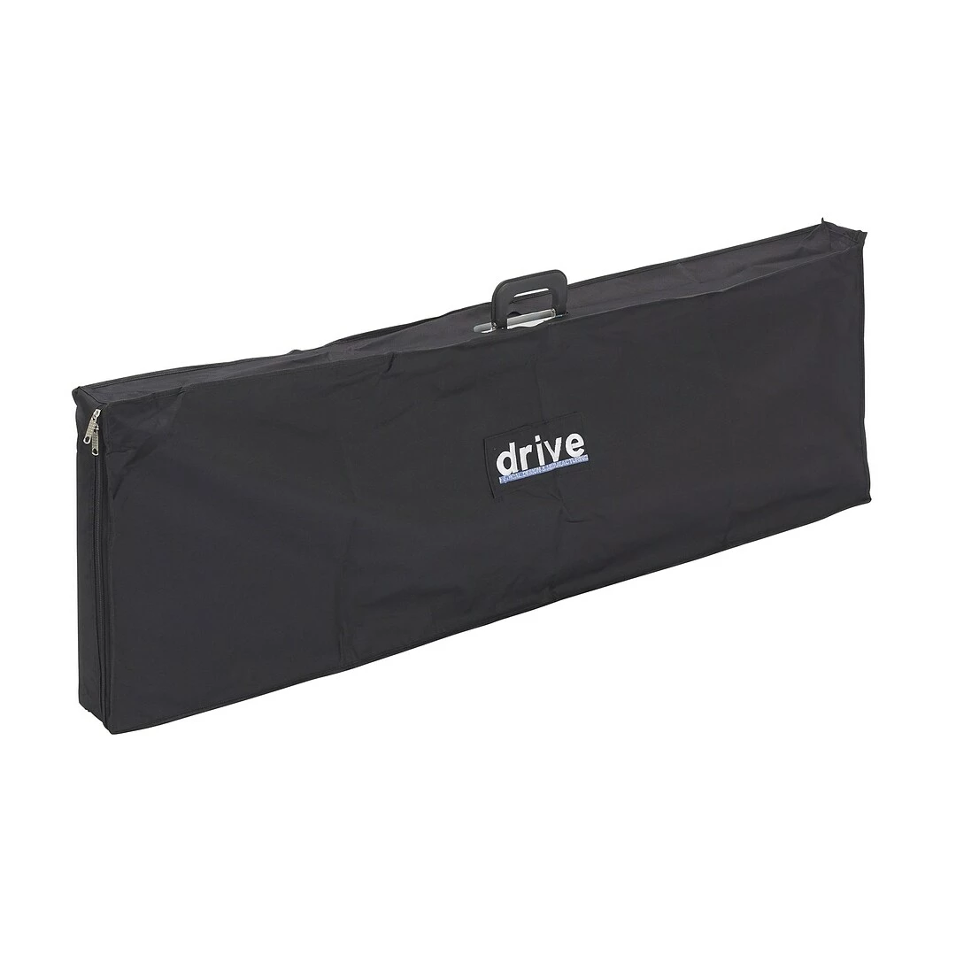The Wheelchair and Scooter Ramp by Drive Medical is designed for transitioning a wheelchair or scooter from one surface height to another. The durable, folding, lightweight construction allows for the ramp to be easily transported in its carry bag. This ramp was especially designed with perforated slots to keep water from collecting on the ramp and ensuring users safety while in use. This 4′ long ramp allows for up to a 8″ rise in surface height. The ramp has a total weight capacity of 600 lbs.