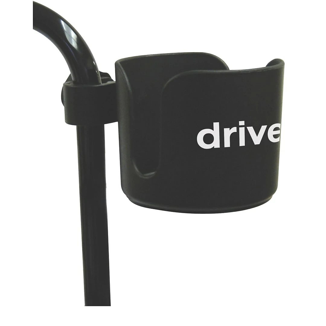 Take a refreshing drink with you on your daily jaunts without the worry of spills. The universal cup holder affixes firmly to a variety of mobility devices and swivels to keep your drink level. The cup holder clamp comes with a removable rubber insert, allowing it to fit on virtually any size tubing. This convenient accessory is a great addition to your walker, rollator, wheelchair, or transport chair. Easy to install; simply place the u-shaped clamp around the pole and thread the tightening screw through the holes! Drive Medical’s Universal Cup Holder is just what you need to keep a drink with you during your busy day.