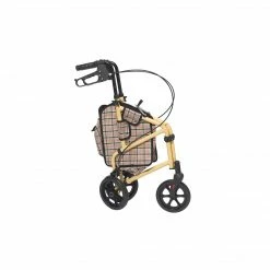 The Winnie Lite Supreme/Go-Lite Three Wheel Rollator by Drive Medical comes in an attractive tan finish.The lightweight, solid 7.5″ tires are ideal for indoor and outdoor use and ensure a smooth ride over most surfaces. The rollator also comes with a standard, tan plaid carry pouch to easily and securely transport personal items. This 3 wheel rollator comes with special loop locks, adjustable handles and brakes.
