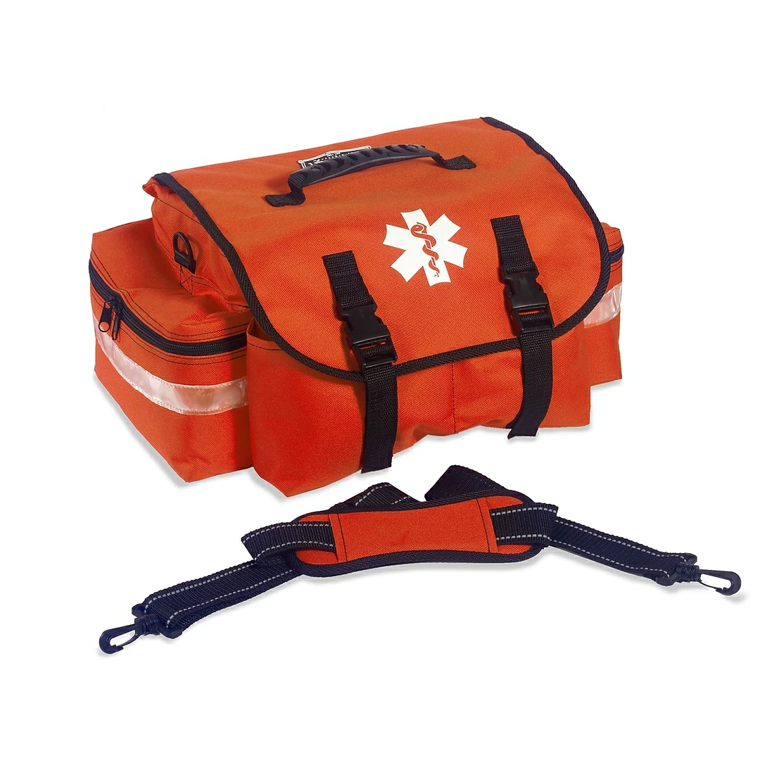 Ergodyne® Arsenal® 5210 Orange small trauma bag is made of 600D polyester with PVC backing for comfort and has heavy-duty carry handles for durability. Bag has ID card window for extra comfort and is ideal for use in EMTs.
