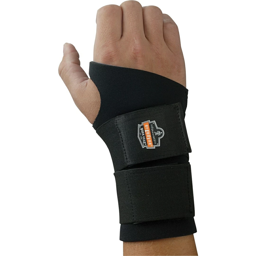 Ergodyne ProFlex 675 Small Black ambidextrous single strap wrist support offers stress relief as well as prevents from injuries and features reversible hook/loop closure that is adjustable for added comfort.