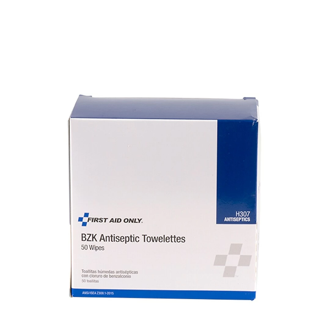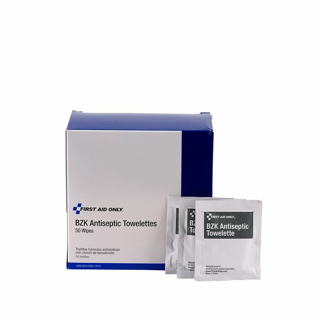Treat minor injuries while reducing the chance of cross-contamination with these individually packaged cleansing pads. These benzalkonium chloride wipes are an excellent alcohol-free choice for cleaning and disinfecting minor surface wounds. Keep this box of 50 sterile First Aid Only cleansing wipes in your first aid kit for treating everyday cuts and abrasions.