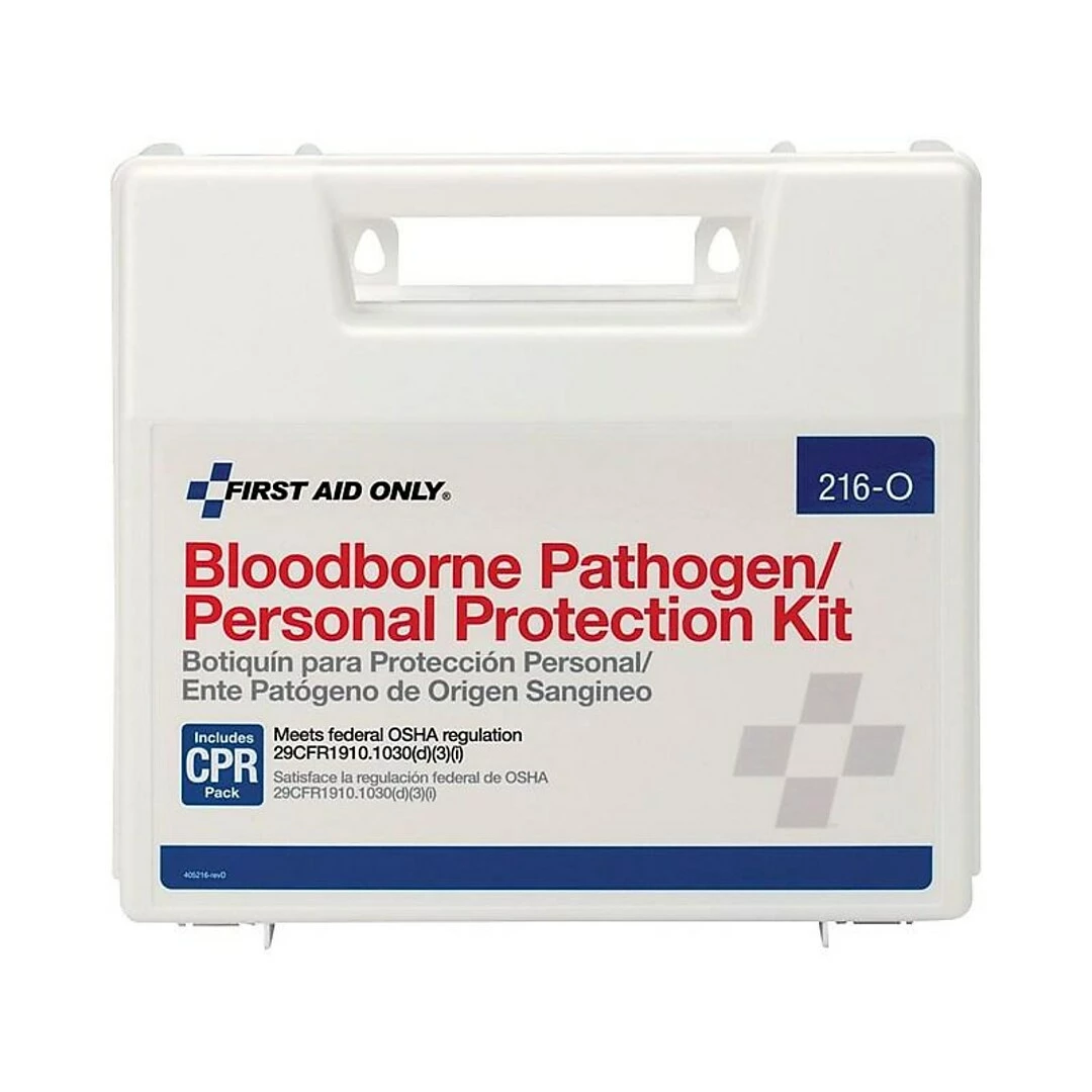 Keep this portable kit on hand to safely clean up potentially infectious materials such as blood or vomit after a bloodborne pathogen incident. The First Aid Only personal protection kit holds everything needed to safely collect and dispose of biohazardous material.