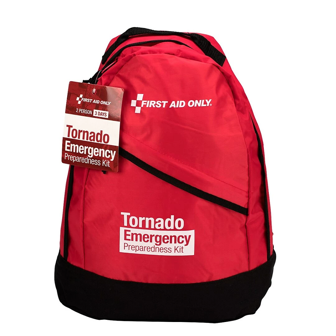 The First Aid Only Two Person Emergency Preparedness Tornado Backpack contains the essential survival and first aid supplies for two people for up to three days. With the crank powered flashlight/radio/cell phone charger, multi-tool, food bars and water packs, you are prepared for any situation. The Tornado Kit also includes a pair of eye goggles, a bottle of eye wash solution, and dust masks to protect against airborne particles and other hazards. The perfectly sized backpack with two, organized compartments also leaves extra room to add any additional personal items you may need. The lightweight, easy to carry backpack keeps your hands free to help others during the emergency. When a disaster occurs, people can be forced from their homes unexpectedly. Emergency preparedness kits ensure those affected will be equipped with the proper supplies in the event of an emergency or disaster, even if they must evacuate at a moment’s notice.