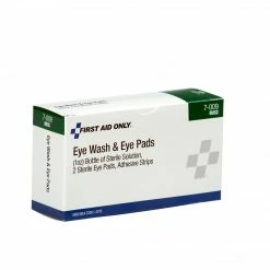 Includes Eye Flushing Solution for Irrigating the Eyes, Eye Pads and Adhesive Strips. Sold as 1 Bottle, 2 Pads, 2 Strips. Perfect for standalone first aid or as a refill for a kit.