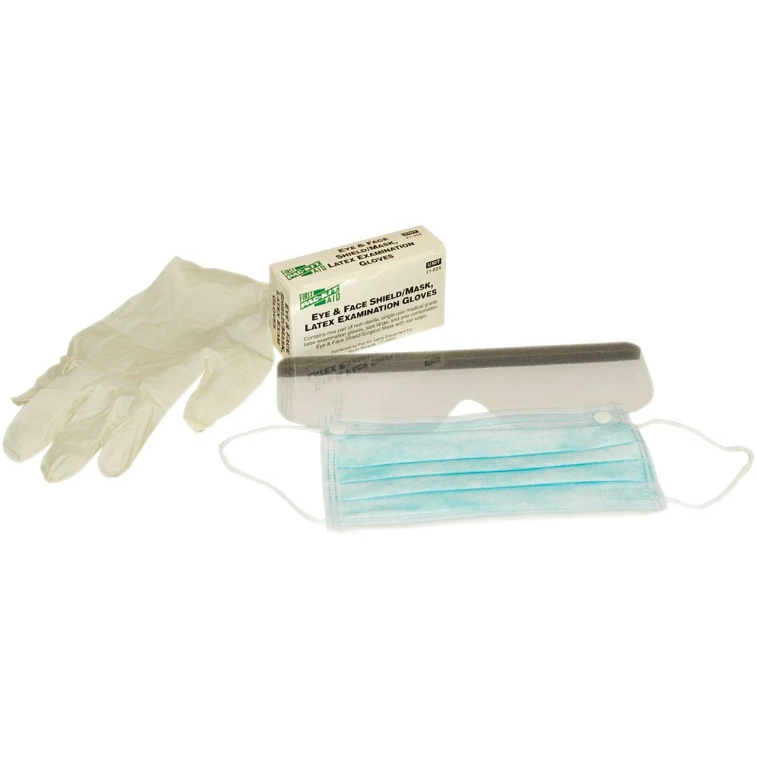 This kit is perfect for a standalone first aid protection kit or as a refill for a BBP cleanup kit (sold separately). It is sold as a three piece kit: Eye and Face Shield and Gloves. Convenient to have for any emergency.