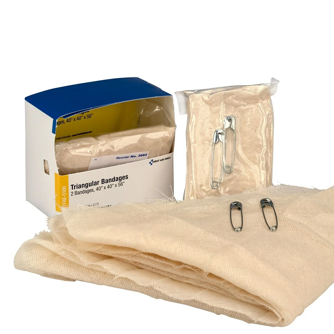 This triangular bandage measures 40″ x 40″ x 56″ and is both simple and effective for your safety needs. It is perfect for standalone first aid or as a refill for a kit. Each bandage includes two fastening hooks and is great to have in case of an emergency.