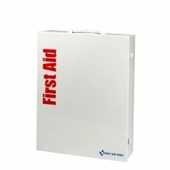 Contents Include: (1) FAE-0796 Thera Tears .02oz Packs, 16ct, (1) FAE-1000 Conforming Gauze Roll, 2″ x 5yd, 2ct, (1) FAE-1304 4oz Burn Spray, (1) FAE-1308 4oz Antiseptic Spray, (1) FAE-3000 Patch Bandages 1.5″ x 1.5″, 10ct, (1) FAE-3011 Blue Metal Detectable Fabric Bandages, 1″ x 3″, 40ct, (1) FAE-3030 Blue Metal Detectable Knuckle Bandages, 20ct, (1) FAE-3041 Blue Metal Detectable Fingertip Bandages, 20ct, (1) FAE-3100 Adhesive Plastic Bandages, 1″ x 3″, 40ct, (1) FAE-3101 Adhesive Fabric Bandage, 1″ x 3″, 40ct, (1) FAE-3102 Gauze Roll, 4″, (1) FAE-3110 Blue Metal Detectable Foam Bandages, 1″ x 3″, 25ct, (1) FAE-4001 Alcohol Wipes, 20ct, (4) FAE-4002 BZK towelettes, 10ct, (1) FAE-4007 Hand Sanitizer, 10ct, (1) FAE-5000 Gauze Pads, 2″ x 2″, 10ct, (1) FAE-5005 Gauze Pads, 3″ x 3″, 10ct, (1) FAE-5100 Triangular Bandages, 2ct, (1) FAE-5933 3″ Self Adhering Wrap Blue, (1) FAE-6004 Scissors, 2 FAE-6012 Cold Compress, 4″ x 5″, (1) FAE-6019 Tweezers, (2) FAE-6022 2 Sterile Eye pads, 1oz Eyewash, ½” x 5yd Tape Roll, (2) FAE-6024 Trauma Pads, 5″ x 9″, 2ct, (1) FAE-6100 1 CPR Mask & 4 Gloves, (1) FAE-6101 Fabric Fingertip Bandages, 20ct, (1) FAE-6102 Nitrile Exam Gloves, 8ct, (1) FAE-6103 First Aid Tape, ½” x 5yd, 2ct, (1) FAE-6104 Elastic Bandages, 2″, (1) FAE-6105 6 Bandages, 2″ x 4″ & 10 Butterfly Bandages, (1) FAE-6150 Finger Cots, 50ct, (1) FAE-6200 Fabric Knuckle Bandages, 20ct, (2) FAE-7012 Burn Dressing, 4″ x 4″, (1) FAE-7016 4oz Eyewash, (1) FAE-7022 Tourniquet, (2) FAE-7030 First Aid/Burn Cream, 20ct, (2) FAE-7040 Antibiotic Ointment, 20ct, (1) FAE-7115 20 Sting Relief Wipes & 10 Hydrocortisone Packets, (1) FAE-9089 Triple Cut Adhesive Tape, 2″, (1) 90014 Aspirin, 100ct, (1) 90015 Ibuprofen, 100ct, (1) 90016 Non-Aspirin, 100ct, (1) 90089 Antacid, 100ct, (2) 90326 WoundSeal Packs, 2ct, (1) 90447 Liquid Skin, (1) 90551 Elovate 15 Glucose Slimpak, (1) 336007 Padded Flexible Splint, 4″ x 24″, (1) FAE-6017 Red Cross First Aid Guide, (1) 2-014 Hema-Seal Trauma Dressing, (1) 21-024 1 Eye & Face Shield & 2 Nitrile Exam Gloves, (1) 21-760 Body Fluid Spill Clean-Up Pack, (1) 22-410 Splinter Out 10/Bx, (1) 25-400 Cotton Tipped Applicators, 100ct, (1) 3-910 Wound Dressing Pack # 10, (1) 9-001 Ammonia Inhalants, 10ct, (1) G310 PVP Iodine Wipes, 50ct, (1) G469 Burn Gel 1/8oz, 25ct, (1) I256 Non Stick Pads, 3″ x 4″, 50ct, (1) Z6005 Cold Pack, 4″ x 5″