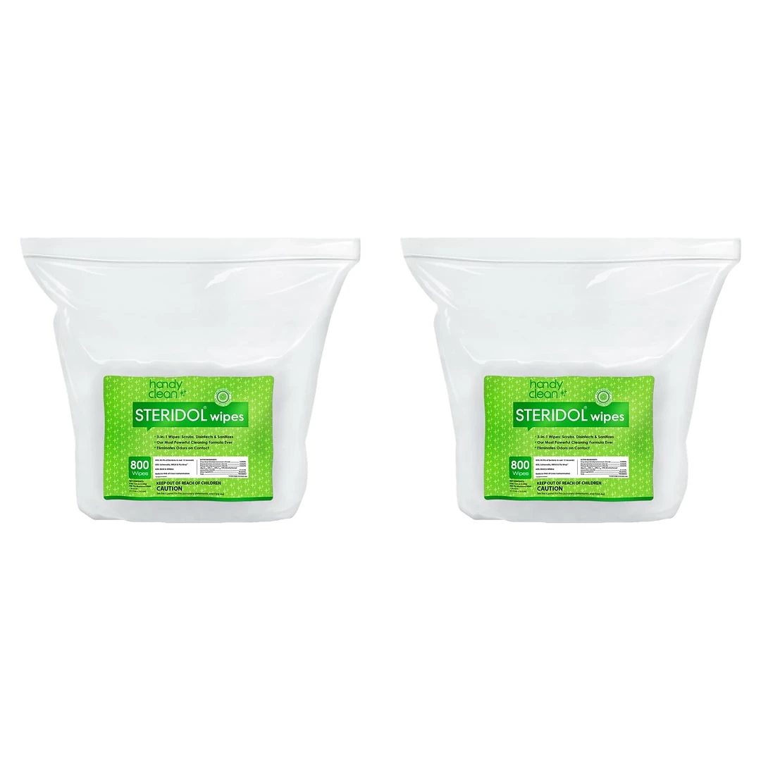 Handyclean Steridol disinfecting wipes scrub, disinfect, and sanitize with a powerful cleaning formula. They eliminate odors on contact and kill 99.9% of bacteria in just 15 seconds. Kill salmonella, MRSA, and flu virus, and reduce risk of cross-contamination.