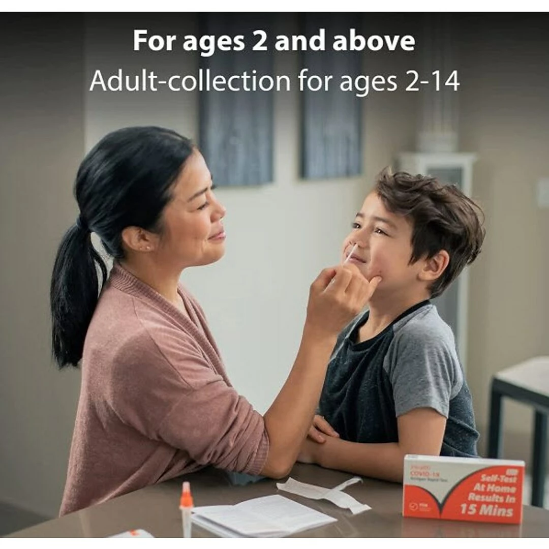 The self-administered test is recommended for individuals aged 15 years and older. Adult-collection is required for testing children 2-14 years old.