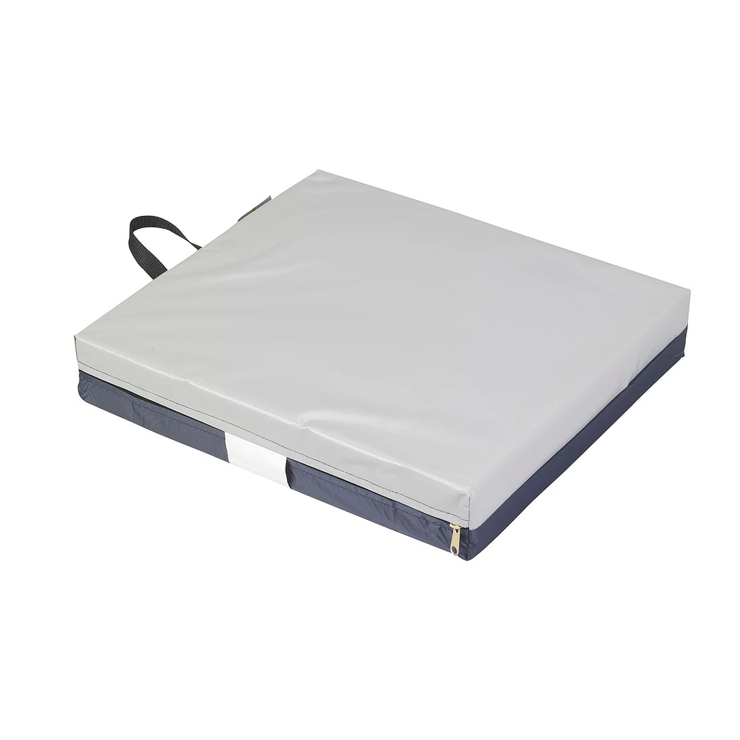 The Gel “E” 3″ Wheelchair Cushion with Gel Bladder by Drive Medical is a pressure reducing cushion, designed to assist in the prevention, treatment and management of pressure ulcers. The viscous gel bladder provides optimized pressure reduction, support and comfort. The polyurethane foam shell is fire retardant and the removable and replaceable cover has a water resistant top, and non slip vinyl base ensuring users safety.