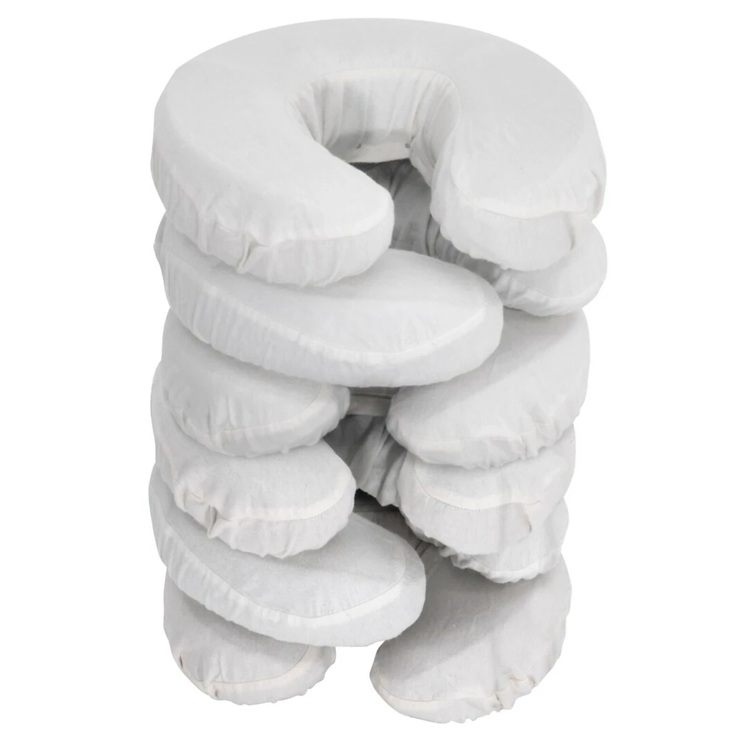 Master Massage Cotton face pillow covers are available with universal three-panel design to ensure a snug fit. Covers are hypoallergenic to keep the dust mites from penetrating inside, sold as 6 per pack.