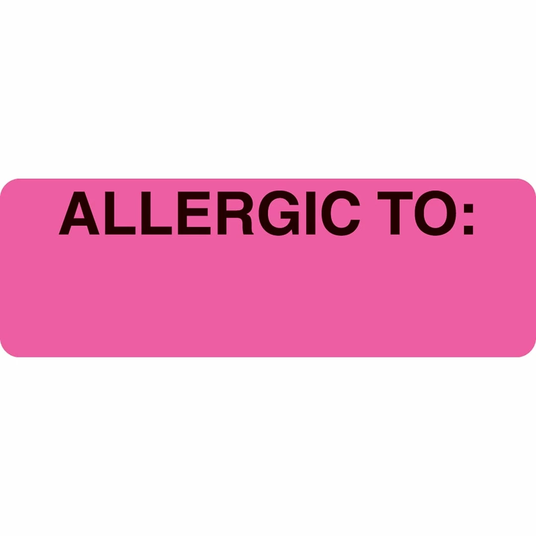 Allergy warning labels help improve patient care and serve as an alert to all staff, informing them of vital patient information 500 Fluorescent Pink “Allergic To” labels per roll
