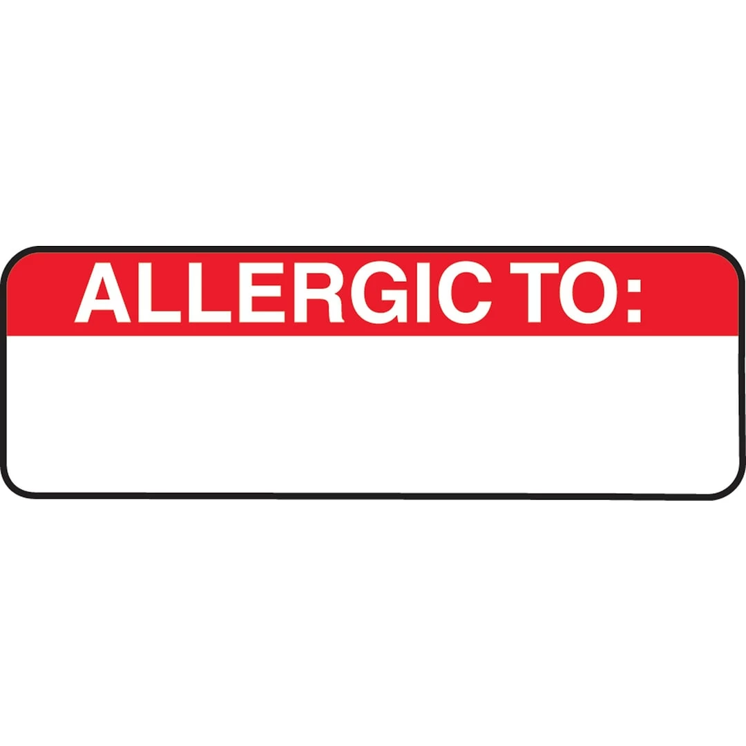 Allergy warning labels help improve patient care and serve as an alert to all staff, informing them of vital patient information 250 Red and White “Allergic To” labels per roll