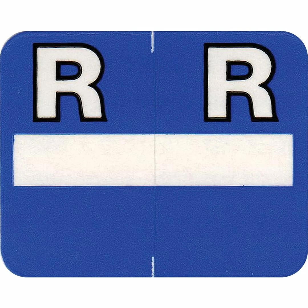 Self-adhesive label is scored for easy folding and application. Protected by clear laminate for durability. Features “Time to Reorder” reminder before end of roll. 750 blue “R” labels per roll in self-dispensing box. Size: 1-1/4 x 1 (before folding).