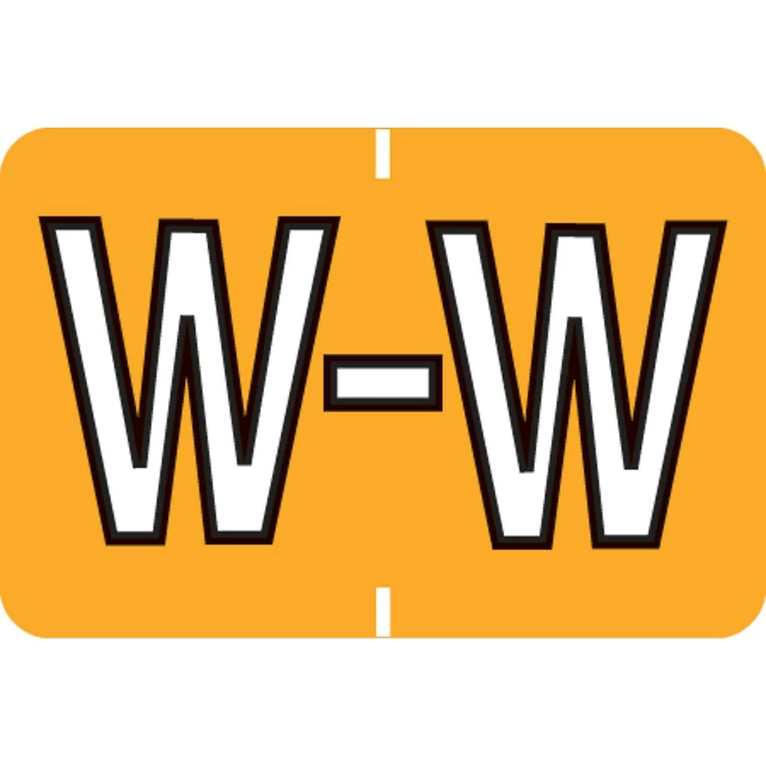 Color-coded alpha labels to match Colwell Jewel Tone Systems. Clear laminate protects labels and prevents smudging and cracking. Scored with self-adhesive backing. Alpha W; pumpkin color. 500 labels per roll in self-dispensing box. Label size: 1-1/2″ x 1″ .