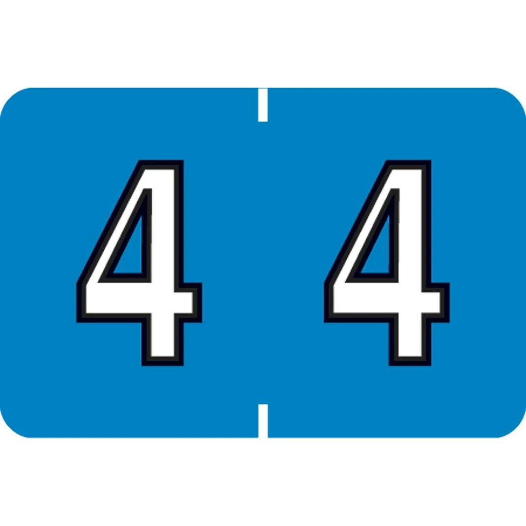 Color-coded numeric labels to match Colwell Jewel Tone Systems. Clear laminate protects labels. Scored with self-adhesive backing for easy application. Numeric 4; blue color. 500 labels per roll in self-dispensing box. Label size: 1-1/2″ x 1″.