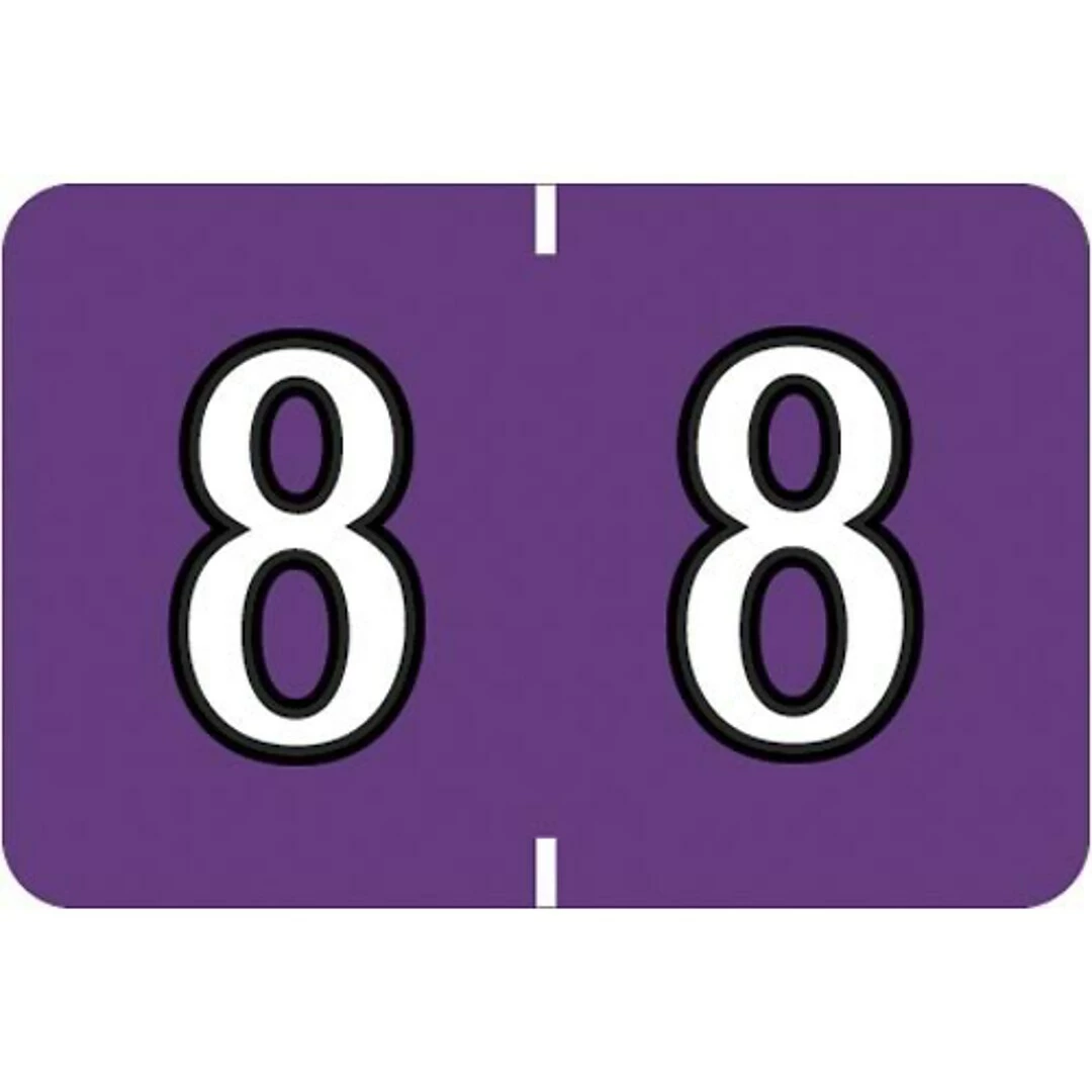 Color-coded numeric labels to match Colwell Jewel Tone Systems. Clear laminate protects labels. Scored with self-adhesive backing for easy application. Numeric 8; purple color. 500 labels per roll in self-dispensing box. Label size: 1-1/2″ x 1″.