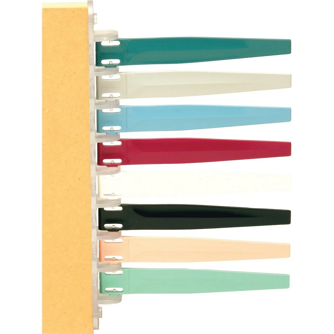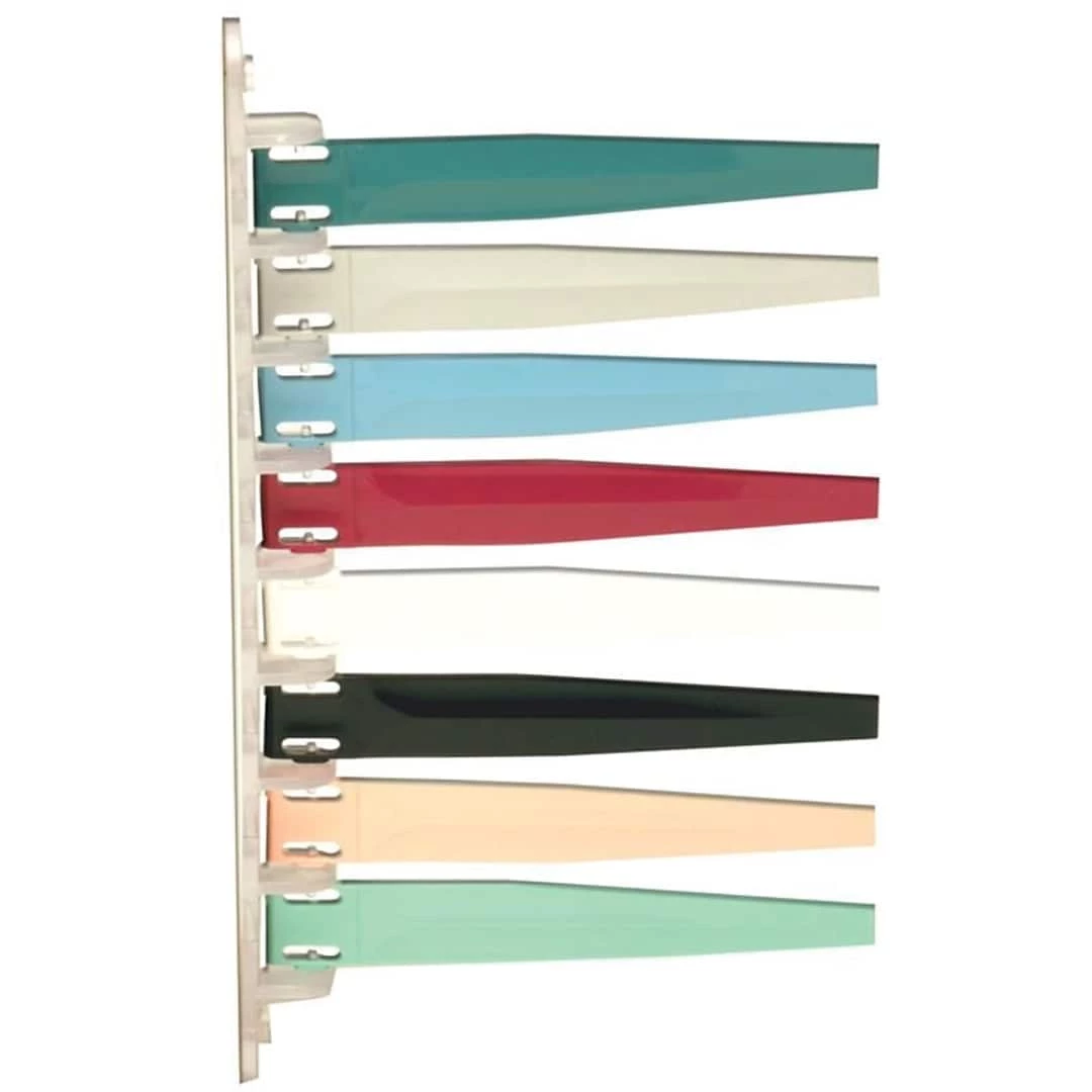 Set up your own coding system using colorful signals. The position and color of the signal flags can be used to designate which doctor is inside or status of each room (occupied, ready for clean-up, patient ready for lab or X-rays, etc.). Simply flick the appropriate flag as you enter or leave a room and the entire staff knows its status. Signals mount easily with 2 screws (included). Constructed of sturdy plastic. Flags are 7″ long. 8 flag colors: Teal Green, Gray, Steel Blue, Berry, White, Black, Mauve, Sea Spray.