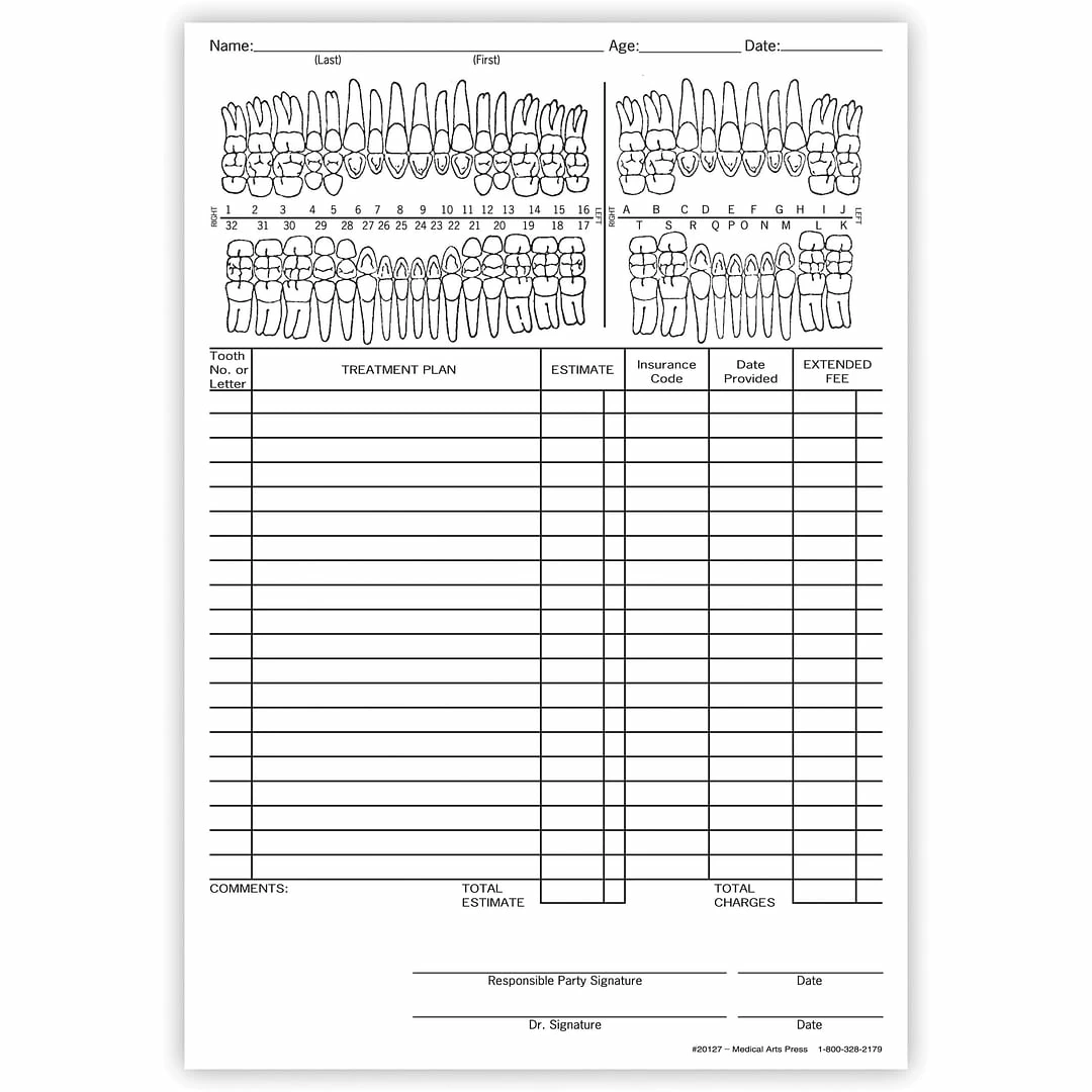 It’s a treatment plan, operatory guide, fee estimator and billing aid all in one. Helps prevent misunderstandings about fees; keeps all info in one place. A convenient reference for the office personnel at billing time. Pads of 100. Size: 5-1/2×8-1/2″.