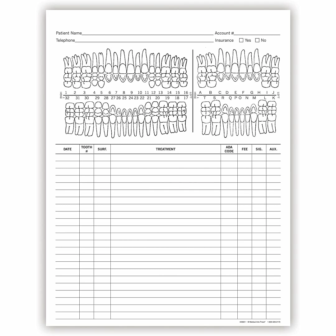 Detailed form illustrated with anatomical tooth graphics for permanent and deciduous teeth