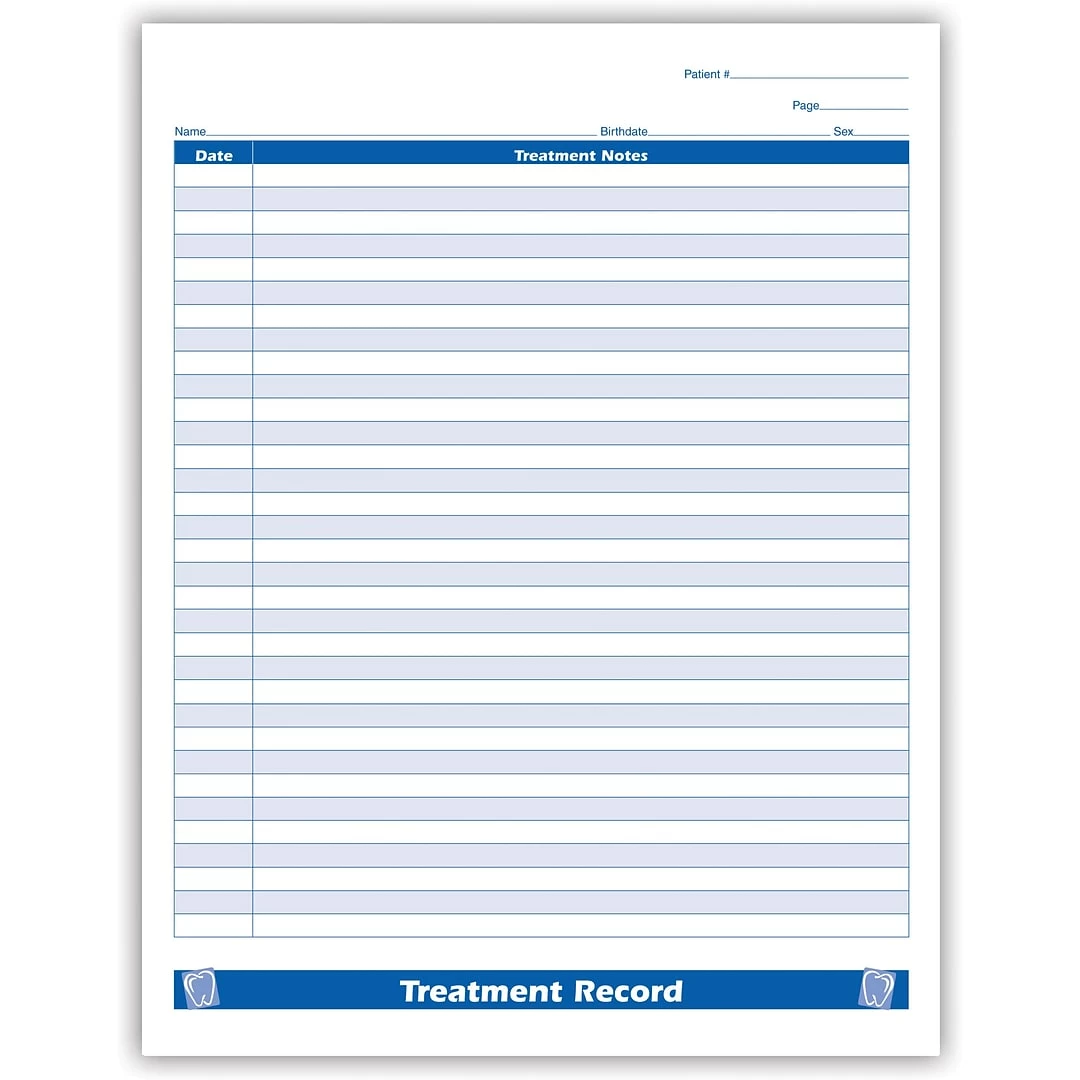Ideal for practices that prefer not to record fees on their treatment notes. Form includes basic patient information. Two-sided with back of form ruled. Printed flip-up style. Package of 250. Size 8-1/2×11″.