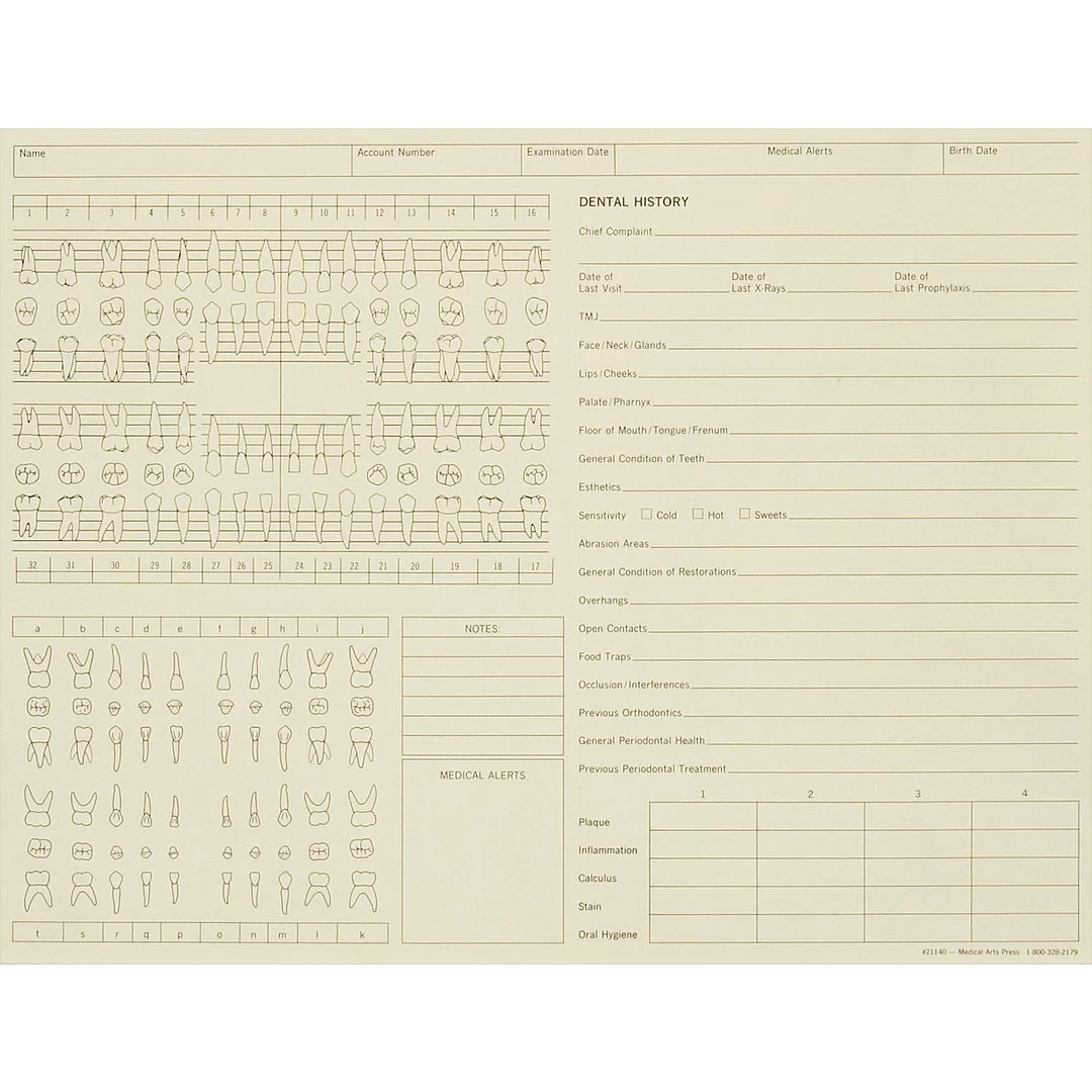 | Brand : Medical Arts Press | Chart and Form Type : Dental Examination Form | Charts Paper Weight (Lbs) : 28 | Color Family : Ivory |