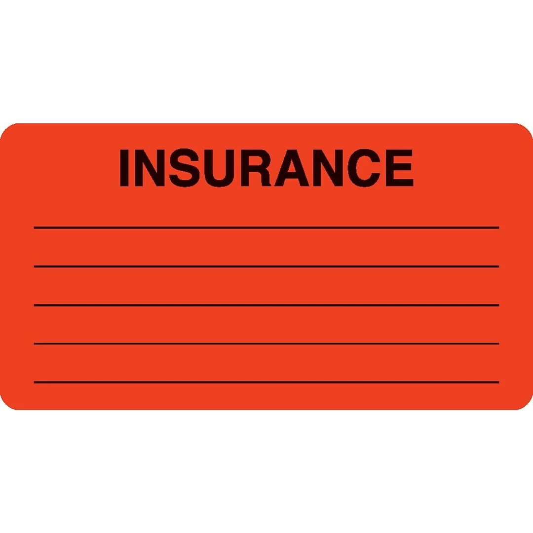 Brightly-colored jumbo labels keep your charts up-to-date with the constant changes in the insurance industry 500 Fluorescent Red “Insurance” labels per package, each with 5 lines