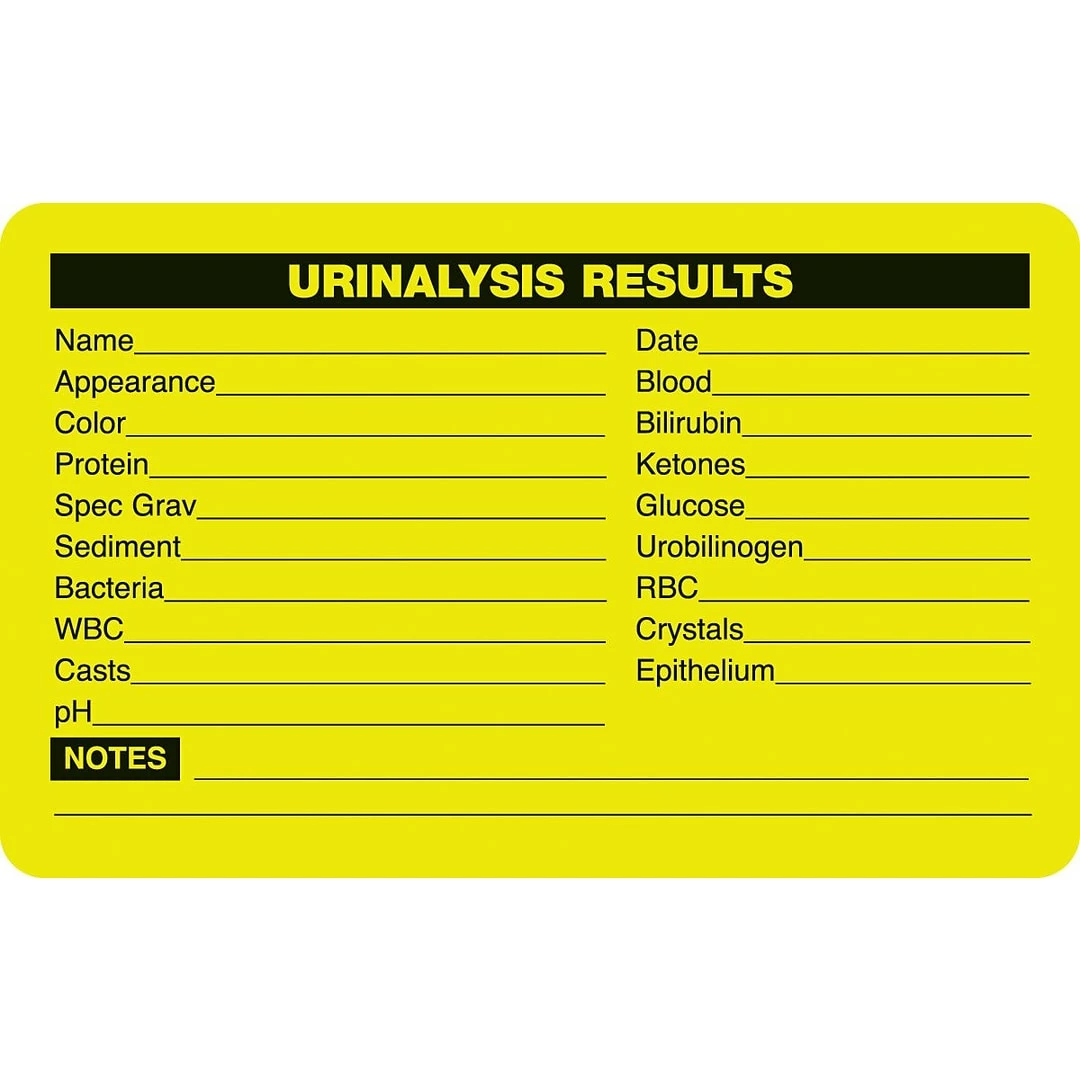 | Color Family : Yellow | Customizable : No | Exact Message : Urinalysis Results | Label Height in Inches : 2-1/2″ |