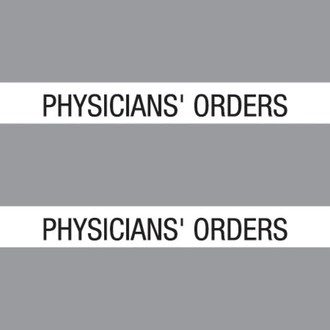 Double bands of Gray and “PHYSICIAN’S ORDERS” title appear on both sides. Scored for easy application. Permanent adhesive backing with laminated mylar coating. Use with Dividers 20256 and 20257. 102 tabs/package. Size: 1-1/2″ x 1-1/2″ (before folding).