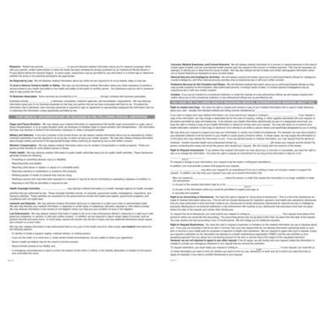 | Customizable : No | Form Size : 11″ x 17″ | Form Type : HIPAA | Format : Privacy Practices Form |