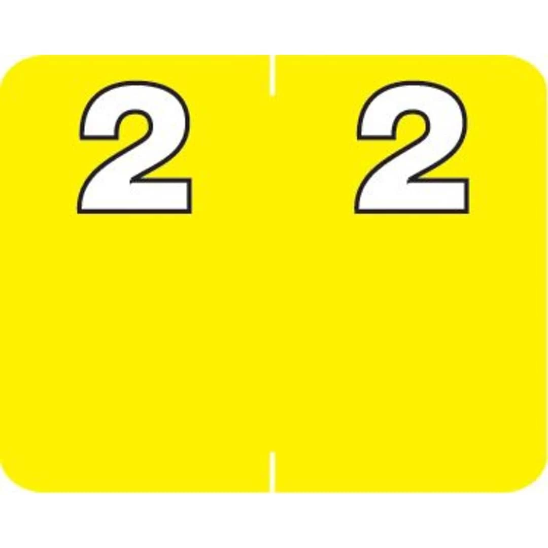 Self-adhesive label is scored for easy folding and application. Protected by clear laminate for durability. Features “Time to Reorder” reminder before end of roll. 750 yellow “2” labels per roll in self-dispensing box. Size: 1-1/4 x 1 (before folding).