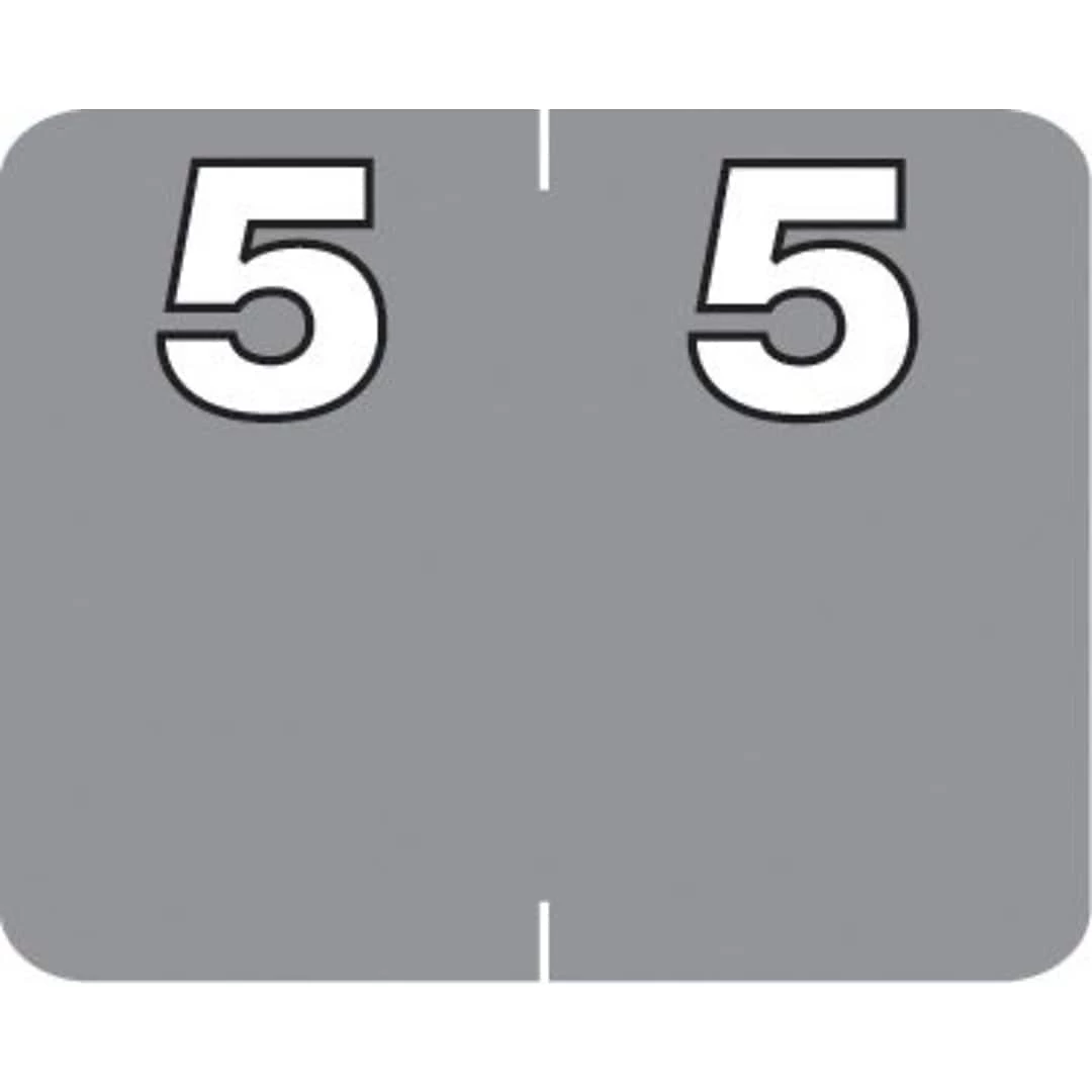 Self-adhesive label is scored for easy folding and application. Protected by clear laminate for durability. Features āTime to Reorderā reminder before end of roll. 750 gray “5” labels per roll in self-dispensing box. Size: 1-1/4 x 1 (before folding).