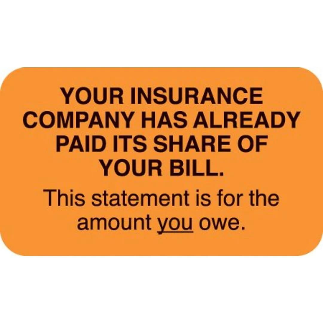 | Color Family : Orange | Customizable : No | Exact Message : Your insurance company has already paid its share of your bill. | Label Height in Inches : 7/8″ |